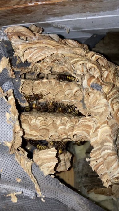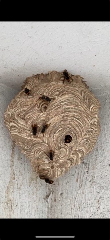 Pendant la saison estivale, je traite les nids de guêpes et frelons visibles et accessibles.